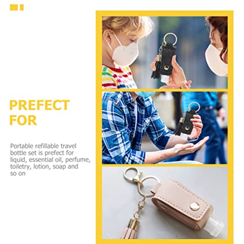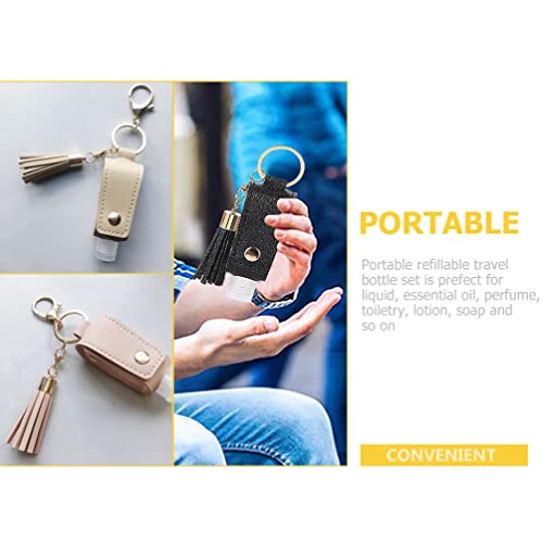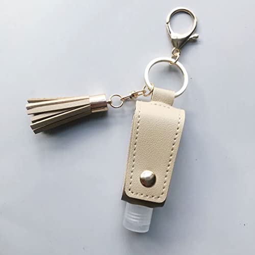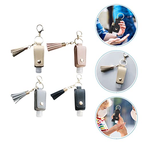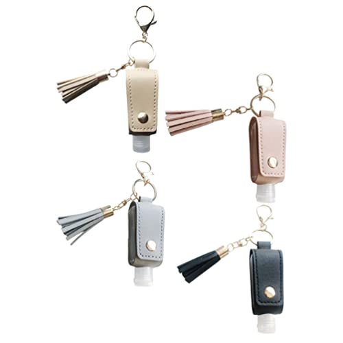 FOMIYES - زجاجات للسفر بسلسلة مفاتيح مع أغطية من الجلد الصناعي وغطاء قلاب من فوميز، زجاجات لوشن وجل لليد فارغة تعمل بالضغط، 4 قطع، الخزف العظمي، ألوان متنوعة
