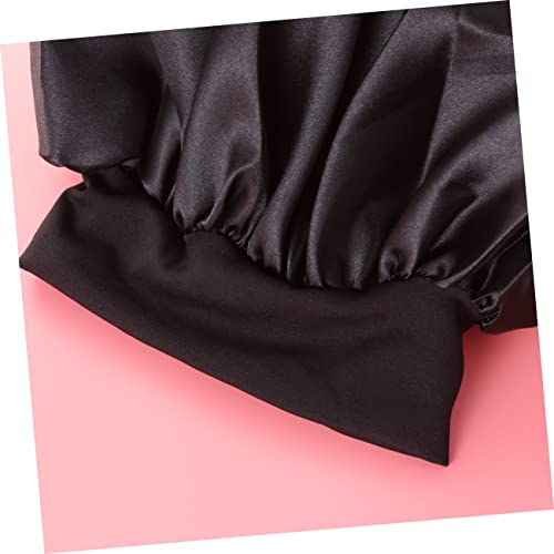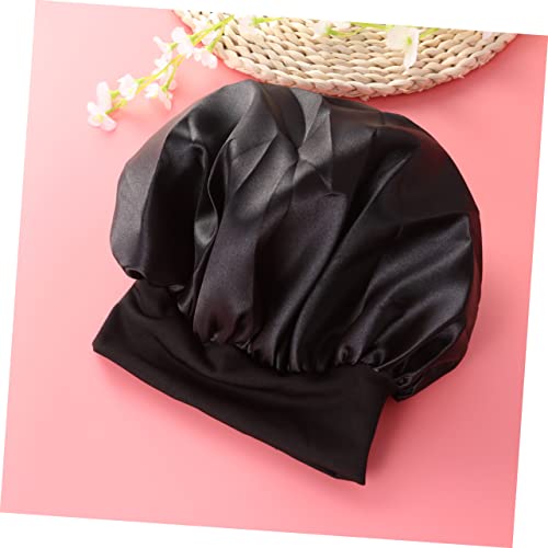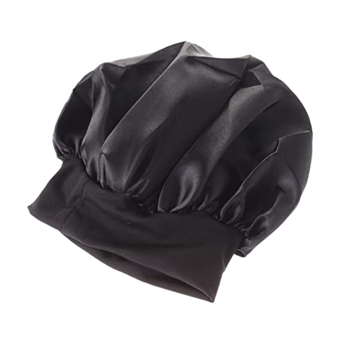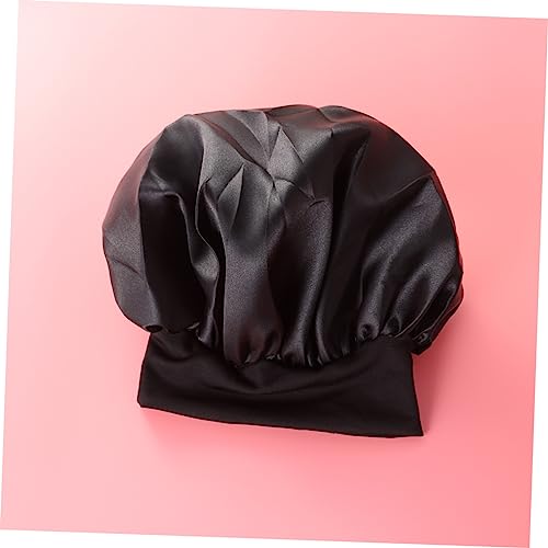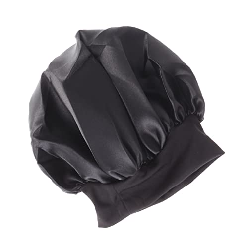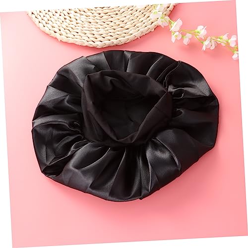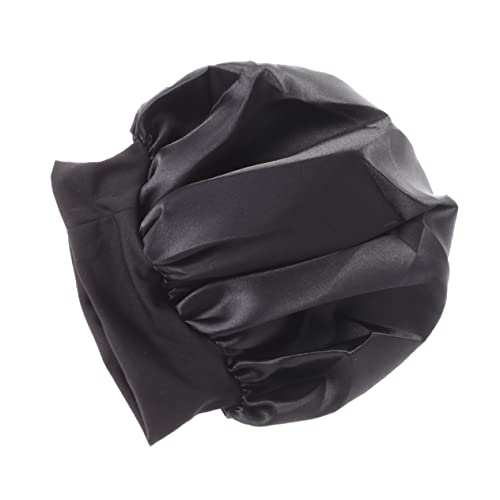 FOMIYES - فوميز. قبعة نوم واسعة الجوانب عالية المرونة من 4 قطع، قبعة نوم للنساء من الساتان لتساقط الشعر، قبعة صغيرة للفتيات ذات الجانب العريض للشعر القصير، عصابة راس للنساء، أسود، M
