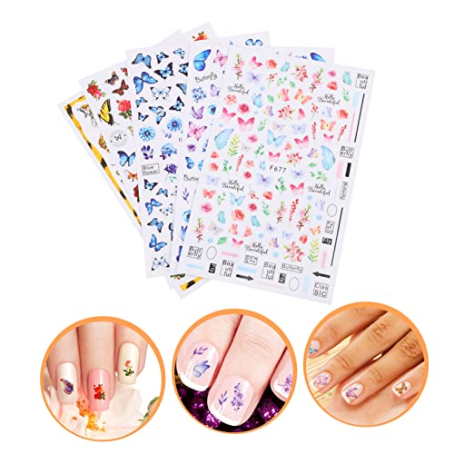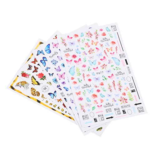 FOMIYES - فوميز. 5 ورقات ملصقات اظافر على شكل فراشة، ملصقات تزيين الاظافر، ملصقات تزيين الاظافر، ملصقات تزيين الاظافر، ملصقات مانيكير عتيقة، ملصقات اظافر لاصقة على شكل فراشات، ملصقات اظافر مخططة ثلاثية الابعاد