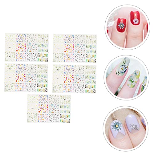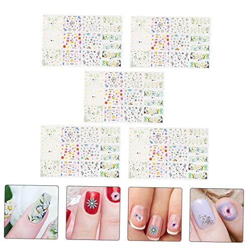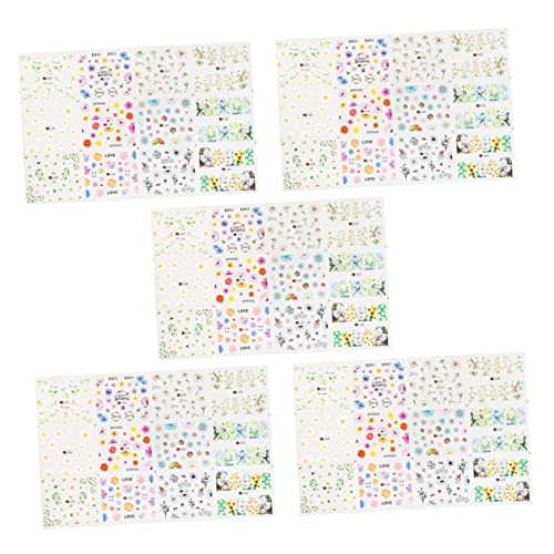 FOMIYES - فوميز. 5 ورقات من ملصقات فن الاظافر للربيع والصيف، ملصقات معدنية على شكل زهور مجففة لفنون الاظافر للفتيات، ملصقات لفن الاظافر ذاتية الصنع، ملصقات اظافر معدنية برقوقية