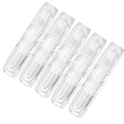 FOMIYES - حاويات شفافة لملمع ومرطب الشفاه بنمط ماسي من البلاستيك من فوميز، زجاجات عينات لأحمر الشفاه وقلم تحديد العين وأحمر الشفاه، زجاجات صغيرة قابلة لإعادة الملء للمكياج ومستحضرات التجميل السائلة، من 5 قطع