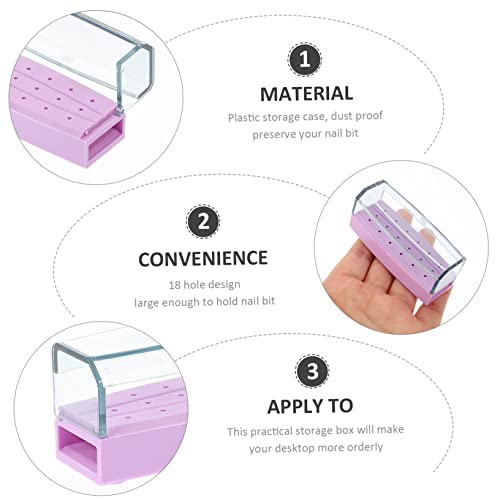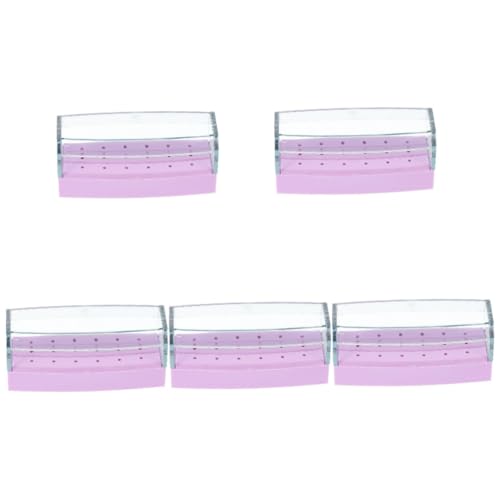 FOMIYES - فوميز. صندوق تخزين رؤوس جلخ الاظافر من 5 قطع، علبة تخزين للمانيكير ولقم مثقاب الاظافر، حافظة حامل رؤوس مثقاب المانيكير، حافظة عرض ادوات مانيكير ورقم الاظافر من البلاستيك، بنفسجي