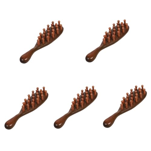 FOMIYES - فوميز. مشط تدليك باسنان عريضة من 5 قطع، اداة تدليك الندبات، اداة تدليك الندبات، مدلك فروة الرأس، مشط مدلك نقطة الزناد، مشط تدليك محمول، مشط تدليك محمول من خشب الصندل، بني