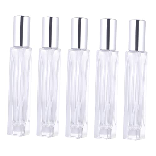 FOMIYES - زجاجات بخاخة عطر صغيرة قابلة لإعادة الملء، حاويات زجاجية محمولة، موزع بخاخة ناعم للمكياج والسفر، غطاء فضي أنيق للاستخدام المنزلي والخارجي من فوميز، 5 قطع