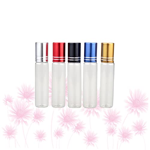 FOMIYES - فوميز. 5 قطع من الزجاجات الدوارة للزيوت والبخاخ، زجاجة عطر زجاجية للسفر، زجاجة عطر صغيرة، حاوية شفافة، زجاجة تعبئة فرعية، زجاجة فارغة قابلة لاعادة الملء، زجاجة كرة زجاجية معبأة في زجاجات