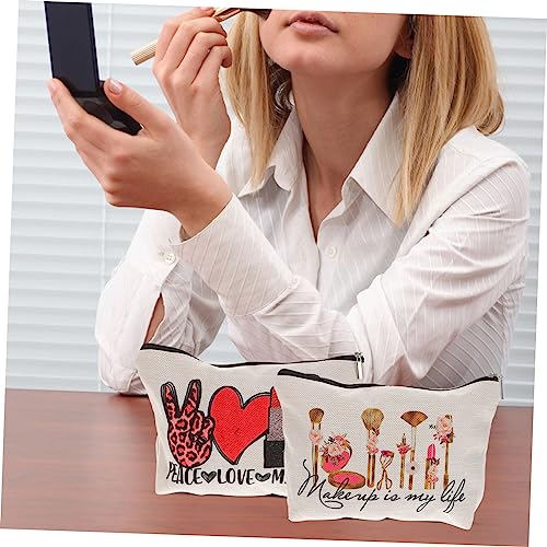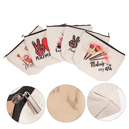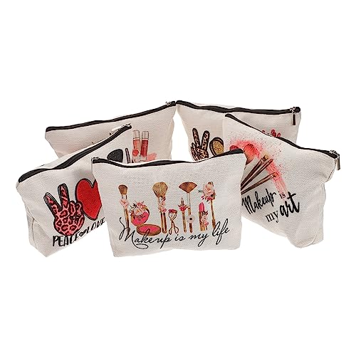 FOMIYES - فوميز. 5 قطع من حقائب مستحضرات التجميل المصنوعة من القطن والكتان، حقائب منظمة للسفر، حقيبة تنظيم المكياج، حقيبة مستحضرات التجميل، حقيبة منظمة للعناية بالبشرة، حقيبة مكياج صغيرة للسفر، حقائب مكياج