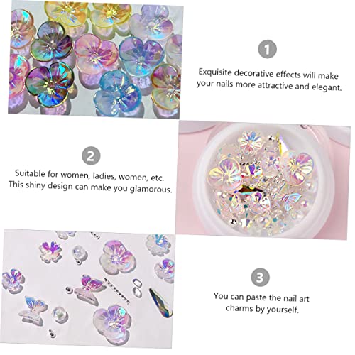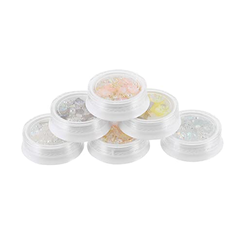FOMIYES - فوميز. 6 صناديق من احجار الراين لتزيين الاظافر، اكسسوارات الاظافر، دلايات احجار كريمة للاظافر، دلايات متدلية على شكل زهور، احجار الراين، احجار الراين للاظافر، صدف ماسي ثلاثي الابعاد