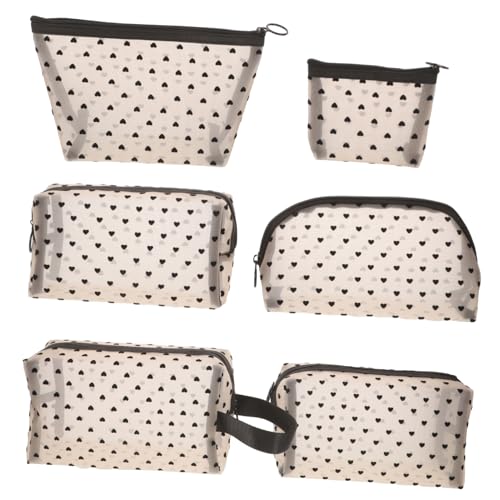 FOMIYES - فوميز. 6 قطع حقيبة مكياج شبكية محمولة، حقيبة مستحضرات التجميل، حقيبة تنظيم المكياج، حقيبة مستحضرات تجميل على شكل قلب، حقيبة مستحضرات تجميل شبكية، حقيبة مكياج للسفر للنساء، حقيبة مستحضرات تجميل صغيرة
