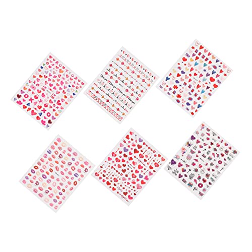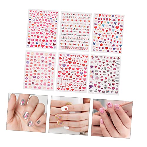 FOMIYES - فوميز. 6 ورقات ملصقات فنية على شكل قلب للاظافر، ملصقات ملونة لحفلات الزفاف، ملصقات اظافر على شكل قلب، ملصقات اظافر على شكل قلب، ملصقات اظافر لاصقة لتزيين الاظافر