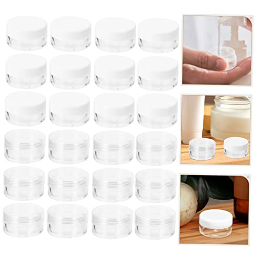 - حاويات الكريم -- ✅ [محتويات العبوة]: 24 حاوية من البلاستيك شفافة فارغة قابلة لإعادة الاستخدام، تكفي لتخزين الكريمات واللوشن ومستحضرات التجميل ومرطبات الشفاه وملمعات الشفاه والمراهم وغير ذلك الكثير.