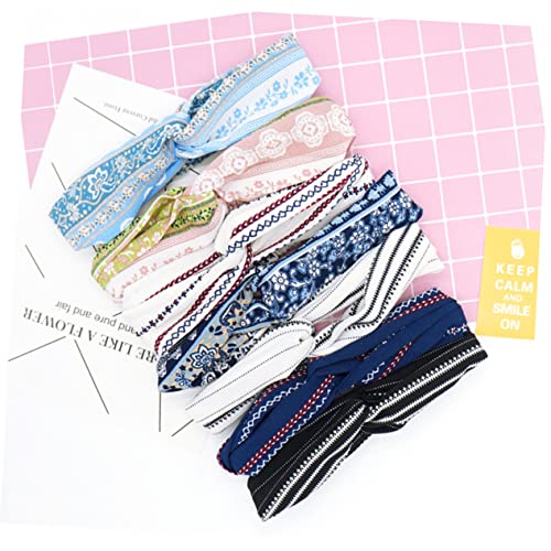 FOMIYES - فوميز. 9 قطع من ربطات الشعر المرنة بنمط رترو وشريط راس مطبوع وشريط راس مخطط