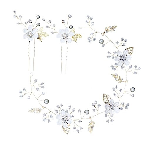 FOMIYES - مجموعة أربطة أس لؤلؤية للزفاف من فوميز، تاج شعر للعروس للزفاف، مشابك شعر ملونة لحفلات الزفاف، وشوكة الشعر وأشرطة شعر، لون أبيض، 9 قطع