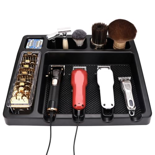FOMIYES - فوميز. صينية تنظيم ماكينة حلاقة الحلاقة، حامل ادوات تصفيف الشعر، صينية حامل ماكينة تشذيب الشعر مع حصيرة مضادة للانزلاق لصالونات الشعر والمتجر