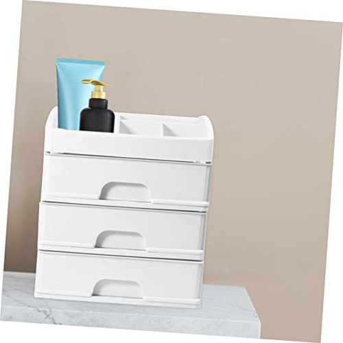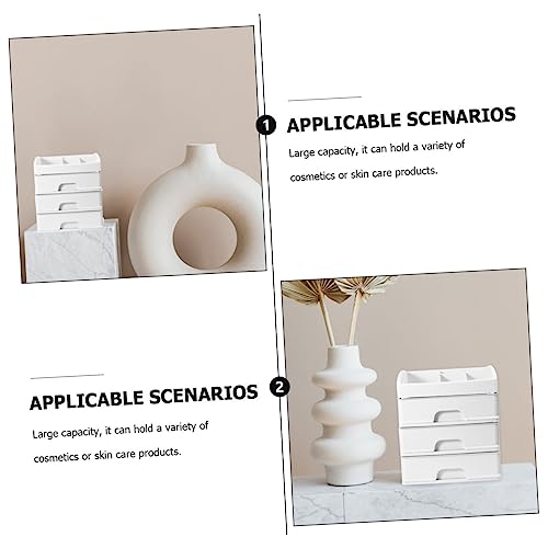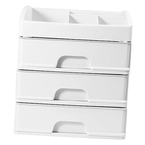 FOMIYES - فوميز. صندوق تخزين بلاستيكي، ادراج تخزين المكياج، درج الزينة، منظم مستحضرات التجميل، صندوق منظم يوضع على سطح المنضدة، صندوق منظم وحامل فرش المكياج، حافظة حمام بيضاء، حقيبة تخزين مجوهرات للسيارة