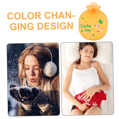 FOMIYES - فوميز. زجاجة مياه ساخنة متغيرة الالوان لتدفئة اليدين، لوازم الشتاء، كيس ماء ساخن بتصميم كرتوني قابل لاعادة الاستخدام، كيس ماء ساخن عملي قابل لاعادة الاستخدام من بلاستيك PVC