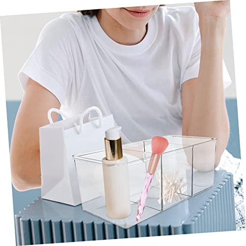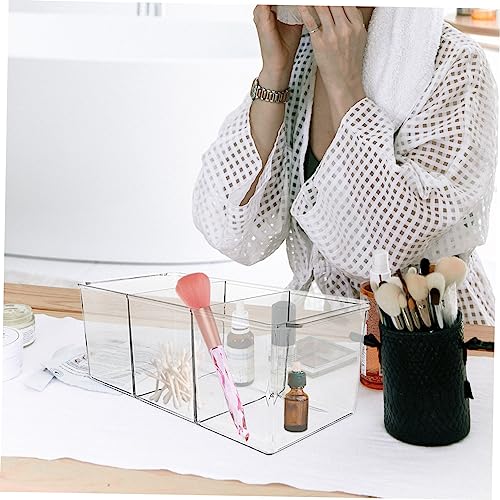 - منظم مكياج للمكتب -- منظم مكياج مكون من 3 اقسام لتخزين مستحضرات التجميل وحامل اقلام رصاص شفاف للحمام وسطح المكتب لتنظيم مستحضرات التجميل ومستلزمات العناية بالشعر والاظافر