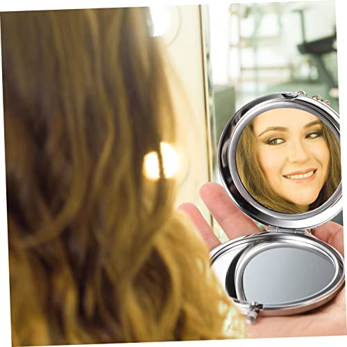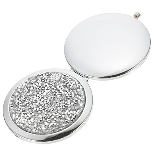 FOMIYES - مراية مكياج كريستالية للسفر من فوميز، مراية مكياج للبنات قابلة للطي، مرايا صغيرة الحجم للسفر ومستحضرات التجميل، مراية بلون فضي