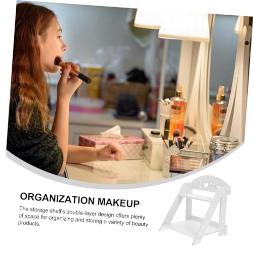 FOMIYES - فوميز. رف تخزين لمنضدة الزينة، رف تخزين لخزانة الملابس، منظم مستحضرات التجميل وتخزين المكياج والمجوهرات، منظم فانيتي تخزين فانيتي من بلاستيك بي في سي، ابيض