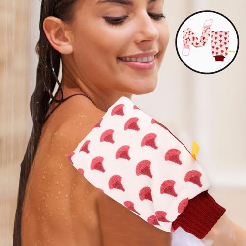 FOMIYES - فوميز. مجموعة قفازات استحمام لتقشير الظهر، منشفة استحمام للتقشير مع قفازات استحمام، مقشر ومقشر للجسم مع مقبض لازالة الجلد الميت للجسم والوجه
