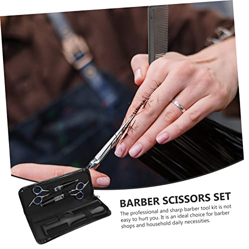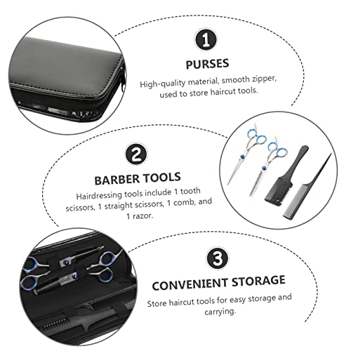 - مجموعة مقصات ومشط: مقص لتخفيف الشعر | يحتوي هذا الطقم الاحترافي لأدوات تصفيف الشعر على مقص مستقيم ومقص بأسنان ومشط حلاقة ومشط للشعر مع شنطة حمل جلدية