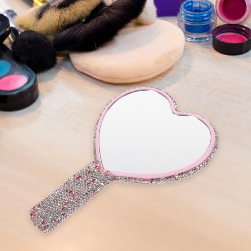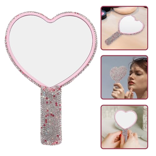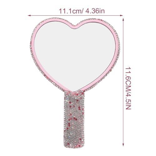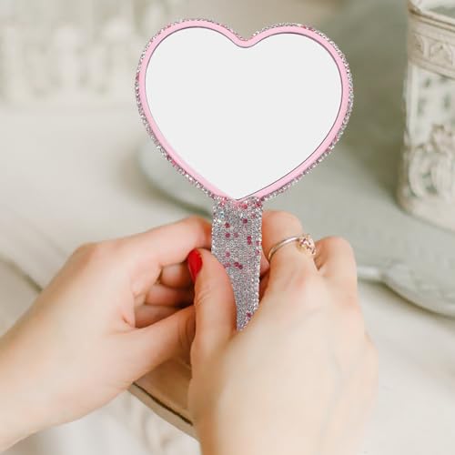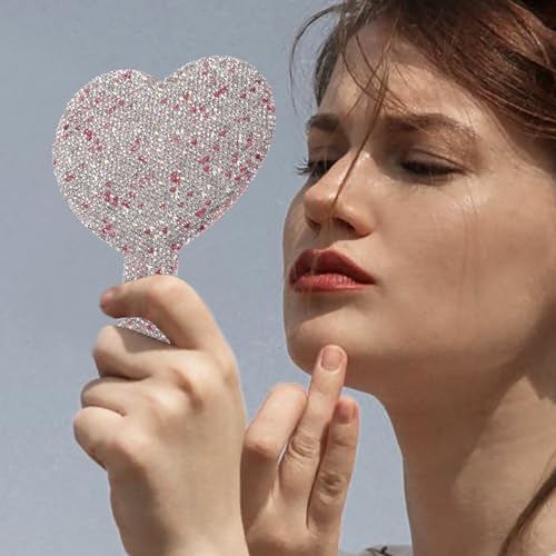 - 💖💕💝 مرآة على شكل قلب من حجر الراين مرآة صغيرة محمولة باليد مع مقبض، تصميم المقبض يجعل من السهل حملها معك أينما ذهبت، لذلك يمكنك دائمًا وضعها في متناول اليد للحصول على لمسات سريعة ووضع المكياج.