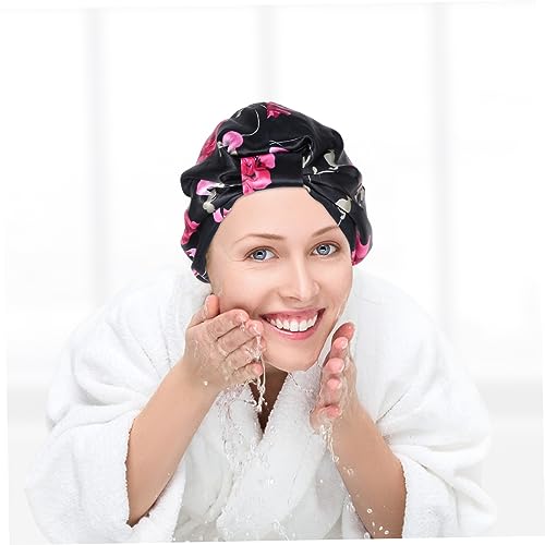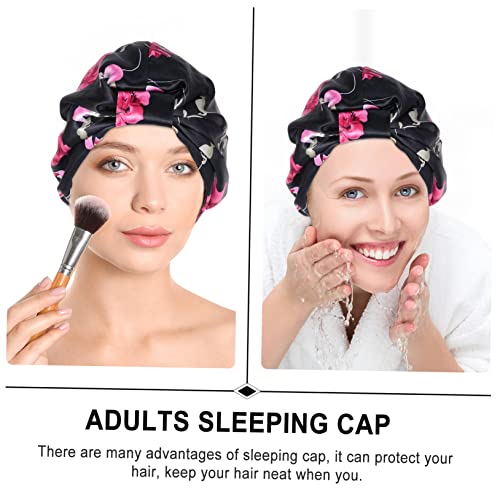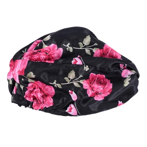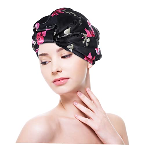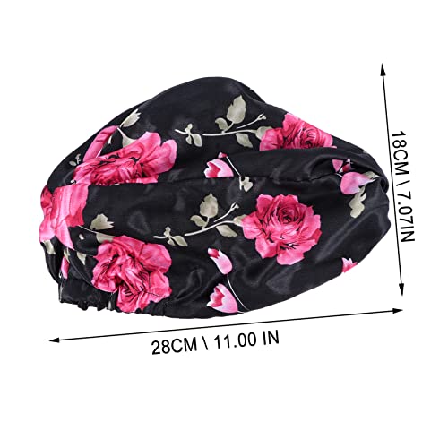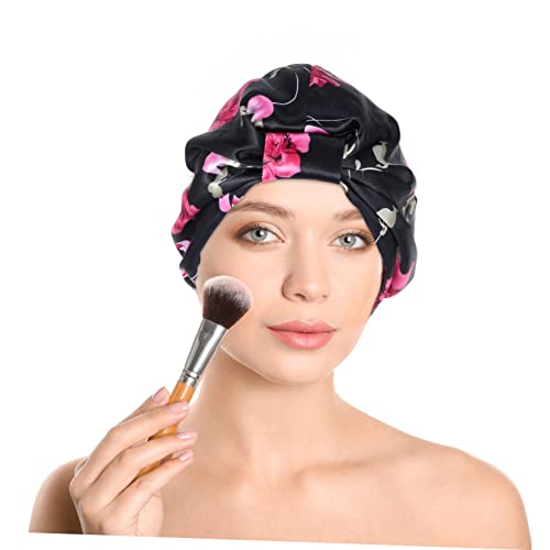 FOMIYES - فوميز. قبعة معقودة مزدوجة قابلة للتمدد للبالغين قبعة نوم بونيه حريرية بونيه للنوم قبعة عمامة اكسسوارات قبعة ساتان مرنة للبالغين قبعة استحمام، أسود