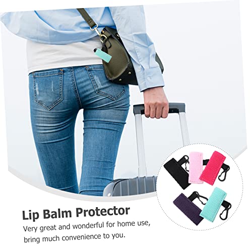 FOMIYES - حامل مرطب الشفاه من 5 قطع حافظة مرطب الشفاه سلسلة مفاتيح بحبل قصير سلسلة مفاتيح للمعصم حامل مرطب الشفاه حامل حلقة مفاتيح غطاء واقي احمر الشفاه غطاء احمر شفاه من فوميز. بوليستر