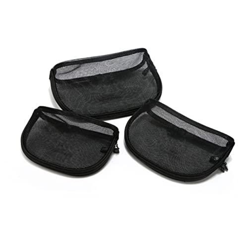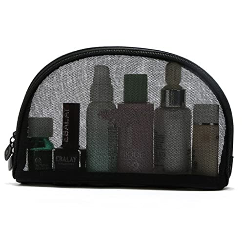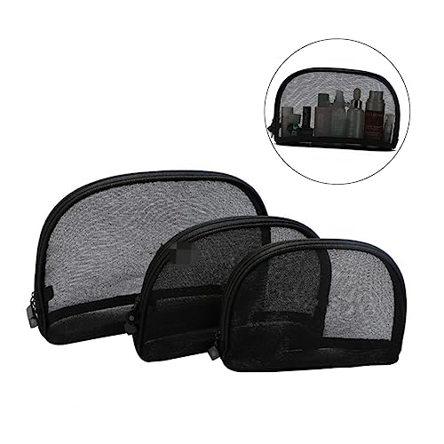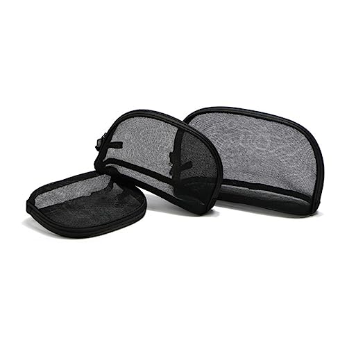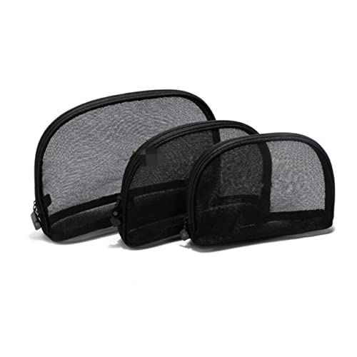 FOMIYES - فوميز. شنطة مكياج شبكية شفافة من 3 قطع، شنطة مكياج شبكية محمولة، شنطة مكياج شبكية بسحاب، شنطة مستحضرات التجميل، شنطة حمل شبه دائرية، اسود، متوسط، رياضية