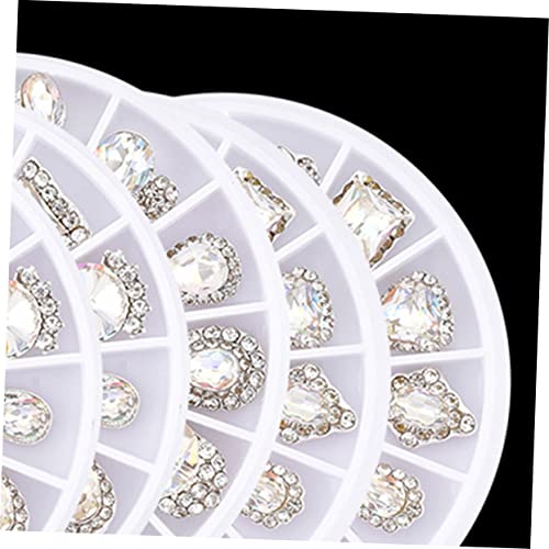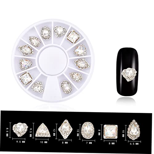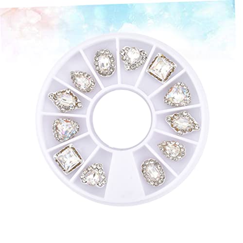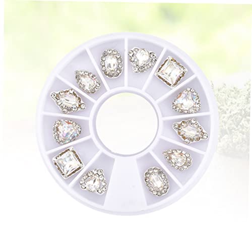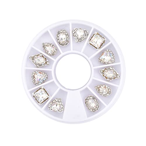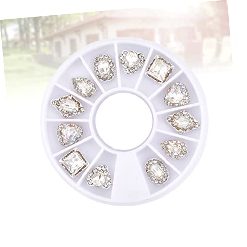 FOMIYES - فوميز. صندوق ديكور للاظافر، صندوق واحد من الكريستال لتزيين الاظافر، احجار الراين الفضية اللامعة للاظافر، احجار الراين لتزيين الاظافر بتصميم قرص دوار