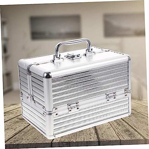 FOMIYES - فوميز. حقيبة مكياج احترافية، حقيبة مستحضرات التجميل، حقيبة مستحضرات التجميل، منظم مكياج محمول، حقيبة مكياج احترافية، حقيبة غسيل، حقيبة مستحضرات التجميل، حقيبة مقسمة، الألومنيوم، فضي