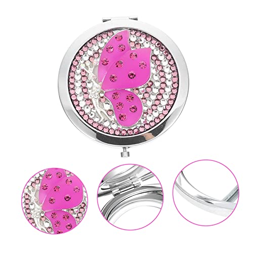FOMIYES - مراة صغيرة محمولة من حجر الراين، مراة صغيرة محمولة باليد للنساء، شنطة توت للسفر، مراة مكياج مكبرة، مراة صغيرة للمحفظة، مراة فانيتي صغيرة جيب، مراة معدن من فوميز