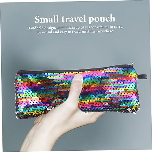FOMIYES - فوميز. شنطة مكياج صغيرة مزينة بالترتر، شنطة صغيرة بسحاب لادوات الزينة للسفر، شنط منظمة للسفر، شنطة سفر صغيرة، كما هو موضح، 20 × 7.5 × 1.5 سم، للرياضة، البوليستر