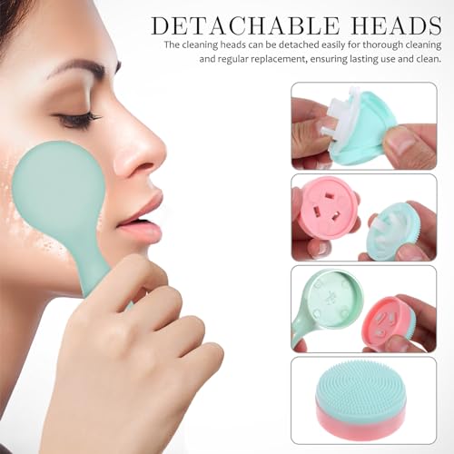 FOMIYES - فوميز. فرشاة تنظيف الوجه اليدوية من السيليكون: 3 قطع للعناية بالبشرة وتنظيف الوجه وتقشير الرؤوس السوداء والرؤوس البيضاء وبقايا المكياج، زهري وابيض واخضر