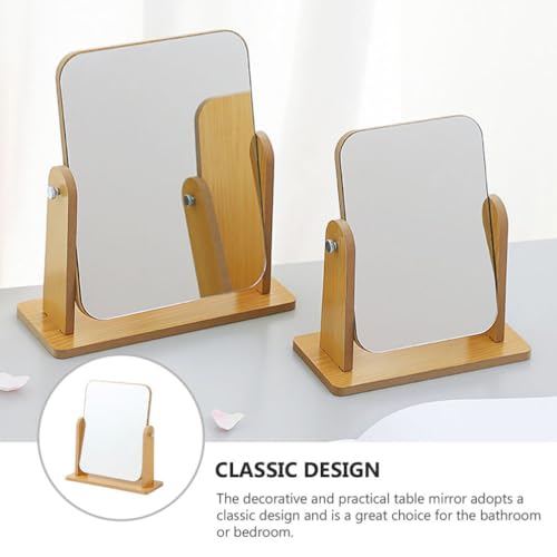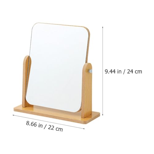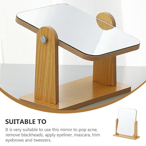 FOMIYES - فوميز. مراة حامل دوارة 360 درجة، مراة مكياج خشبية بسيطة، مراة مكتب فانيتي صغيرة، مراة طاولة مستحضرات التجميل، مراة دوارة قائمة 24 × 22 سم