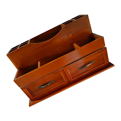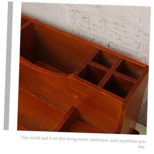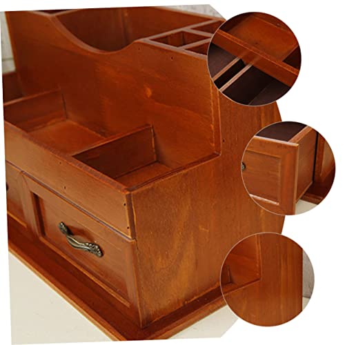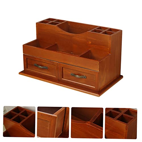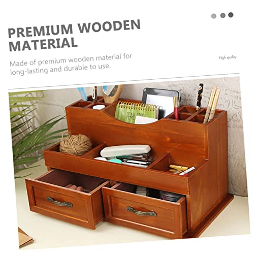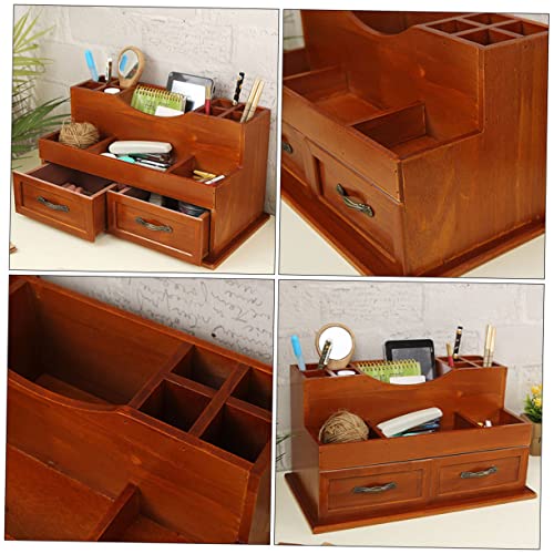 FOMIYES - فوميز. صندوق تخزين منظم للمكتب، رف منظم لسطح المكتب، صندوق تخزين خشبي منظم مستحضرات التجميل، حامل تخزين المكياج، درج المكتب، خشب الصنوبر البني، بني
