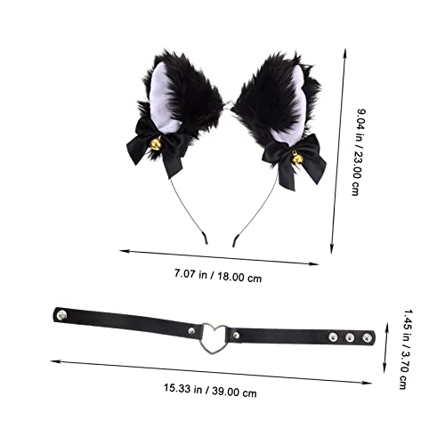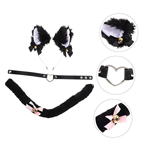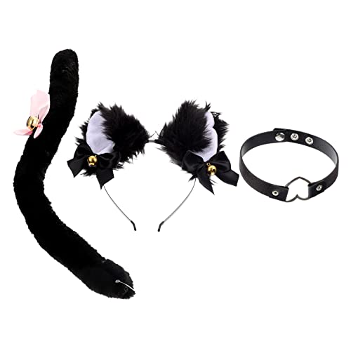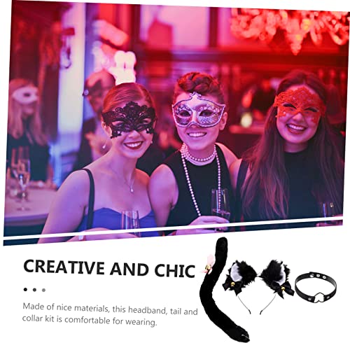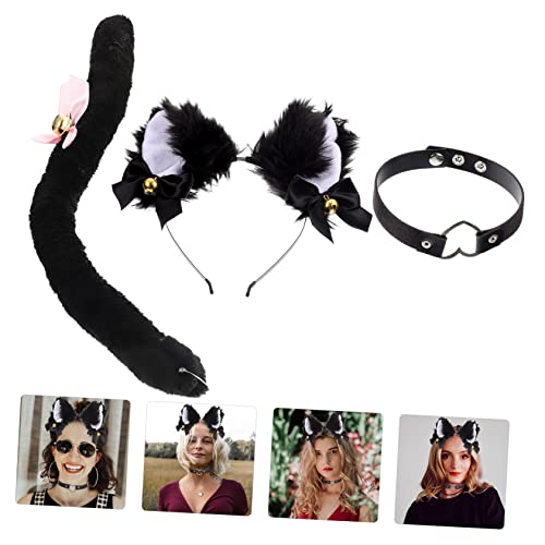 مجموعة مكونة من سلسلة دي بارا وحلق وطوق رأس بتصميم أذن قطة وذيل للحفلات التنكرية، فيونكة من الدانتيل وطوق ضيق من بيل وطاقية للحفلات التنكرية، مجموعة واحدة