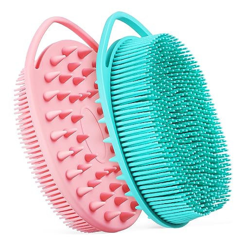FOMIYES - فوميز. فرشاة غسيل الجسم، فرشاة تدليك دي دوبل، فرشاة جسم خضراء، فرشاة للجسم باللون الزهري، فرشاة فرك الجسم، فرشاة للجسم للاستحمام وحوض الاستحمام، فرشاة استحمام للاطفال من جل السيليكا