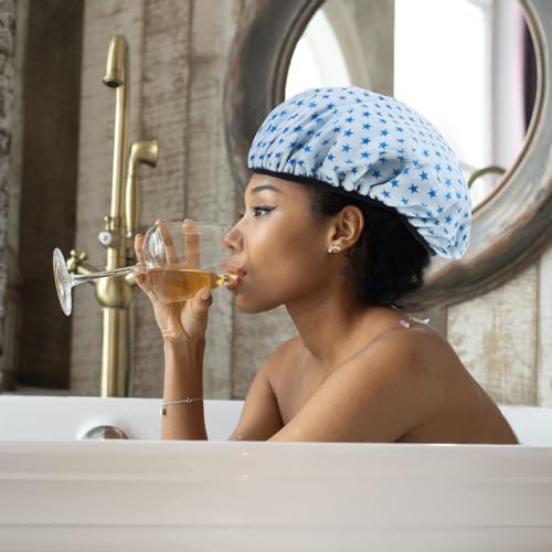 FOMIYES - فوميز. طاقية استحمام 3 في 1 مقاومة للماء وقابلة للغسل بشريط مطاطي كبير جدًا لصالونات التجميل والمنتجعات الصحية للنساء، لون ازرق