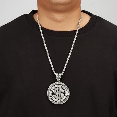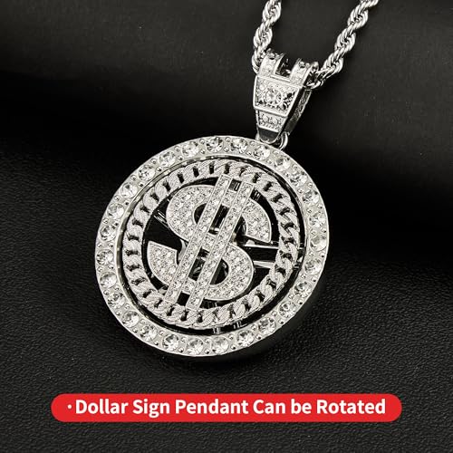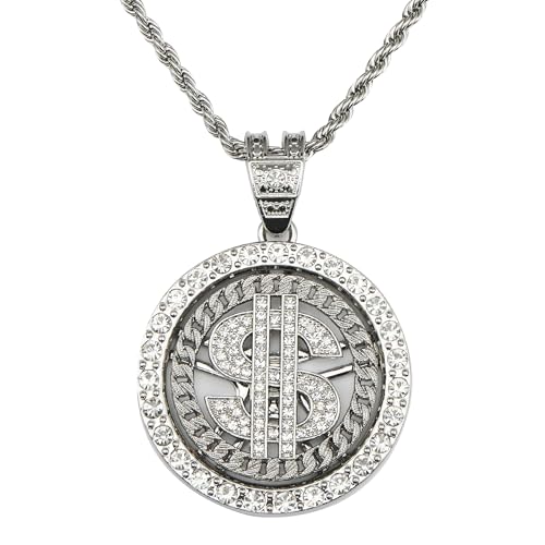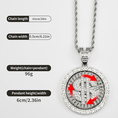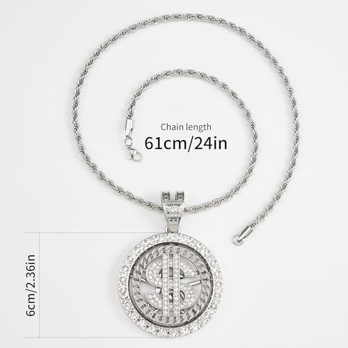 Fomobymi - سلسلة حبل مطلية بالذهب عيار 18 قيراط مع دلاية دائرية دوارة للرجال والنساء، سلسلة فضية 24 انش، سلسلة طويلة، زنك، زركون من فوموبيمي