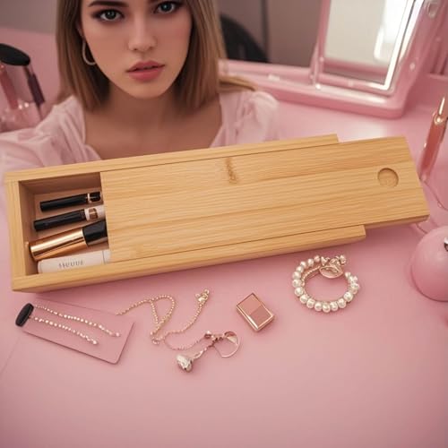 FontFable - صندوق أقلام مع غطاء منزلق مصنوع من خشب الزان والبامبو مناسب كصندوق هدايا ومجوهرات من فونتفابل، لون أصفر فاتح(Light Yellow Wooden)، مقاس 24 × 8 × 4.5 سم