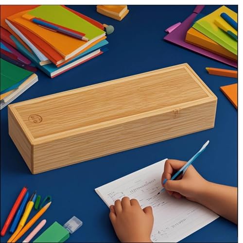- غطاء منزلق مريح: تم تصميم الصندوق بغطاء منزلق لضمان عدم سقوط الأدوات المكتبية منه. الأبعاد الخارجية للصندوق 24 × 8 × 4.5 سم، مما يجعله مثاليًا لمختلف أدوات الرسم مثل ألوان الشمع أو أقلام الرصاص أو الفرش.
