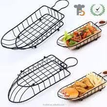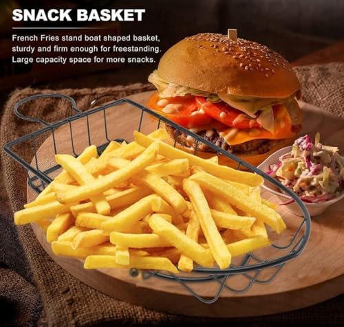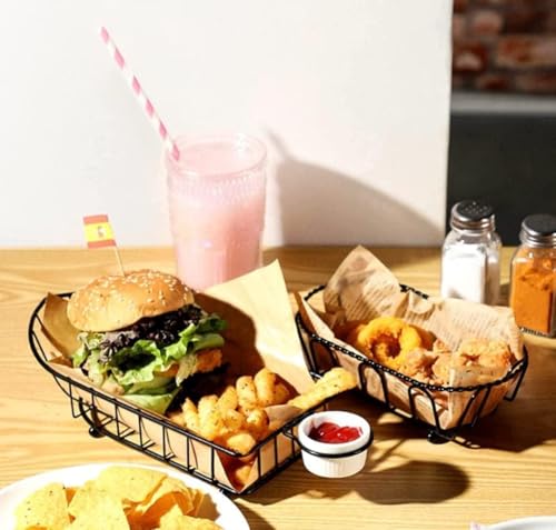 Generic - سلة طعام - تصميم مستطيل مع طرف دائري للبطاطا المقلية وحامل الوجبات الخفيفة ورف التقديم، مثالية للمطاعم، معدن اسود متين، مناسبة للدجاج والهوت دوج والاجنحة وحلقات البصل