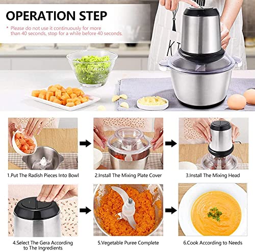 - 【مفرمة طعام كهربائية قوية】 تصميم من الستانلس ستيل يجعل المفرمة متعددة التقطيع أنيقة وتناسب مطبخك بشكل مثالي. مع 4 شفرات من الستانلس ستيل ومحرك قوي، يمكنك فرم الفاكهة والخضروات واللحوم والمكسرات والصلصة وأطعمة الأطفال أيضًا في ثوانٍ.