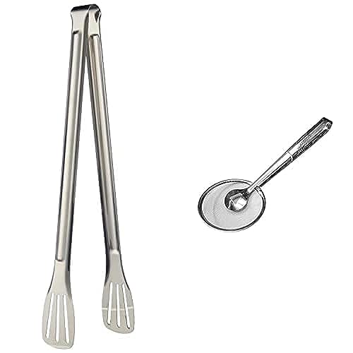 Generic - مشبك طعام، مقبض غرف طعام مستطيل من الستانلس ستيل، فضي + مساكة طعام للمطبخ متعددة الوظائف من الستانلس ستيل من امبوريا، مصفاة زيت طعام، معلقة شبكية للقلي مع مشبك، أدوات طهي