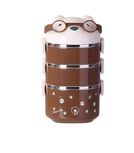 Generic - علبة حفظ طعام عمودية، حاوية حرارية محمولة مصنوعة من الفولاذ المقاوم للصدأ بأربع طبقات مناسبة للمراهقين والبالغين والأطفال، لانش بوكس للمدرسة والمكتب والوجبات الخفيفة بشكل باندا لطيف بمقبض