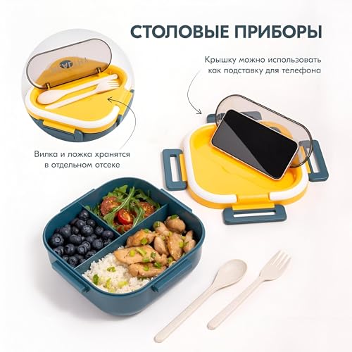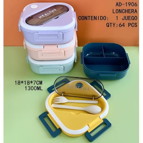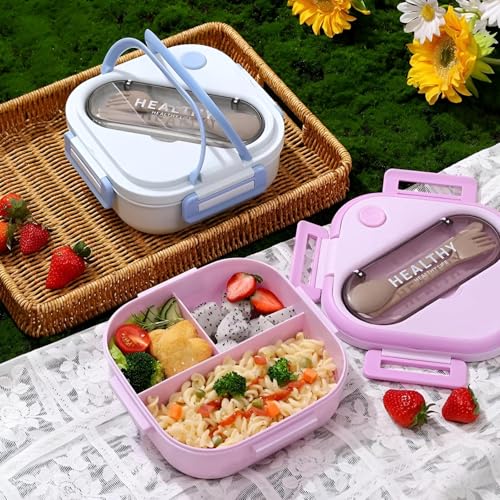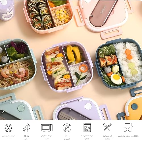 Generic - حاوية طعام متعددة الالوان، صندوق غداء مقسم بتصميم متين ومقبض محمول وشوكة متضمنة، ملعقة مثالية لتخزين الوجبات المتوازنة في التنقلات اليومية أو استراحات المكتب أو النزهات العائلية
