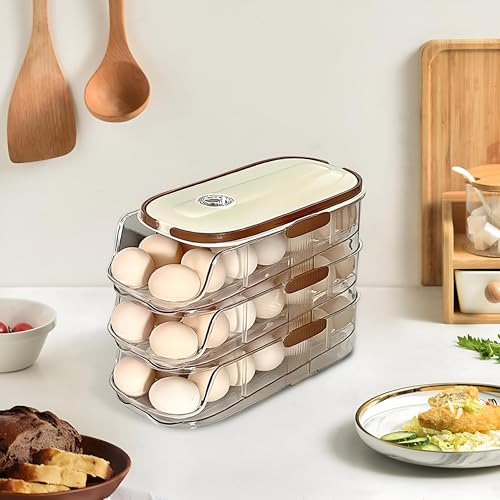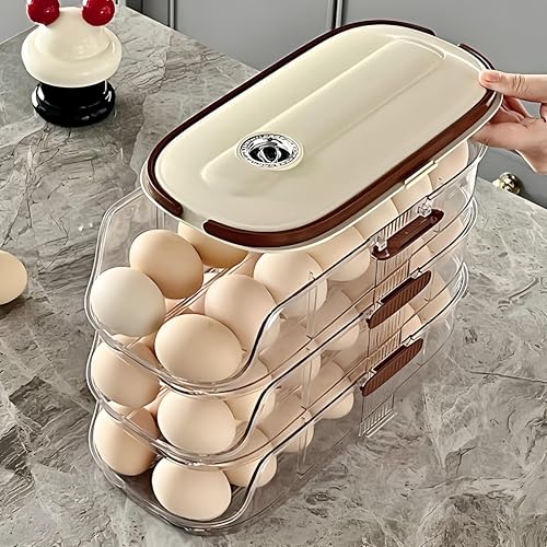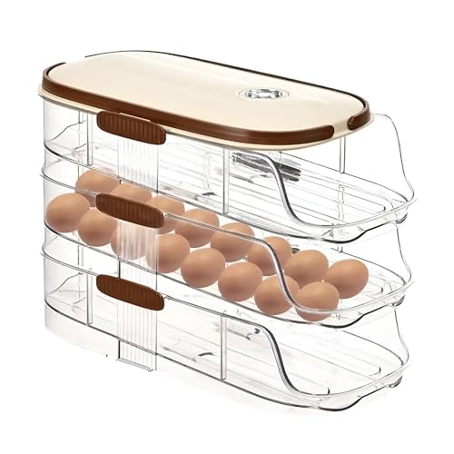 Generic - تخزين البيض الآمن غذائيًا - موزع منزلق متعدد الطبقات قابل للطي مع مساحات تخزين واسعة، الافضل لتنظيم الثلاجة ولنضارة البيض