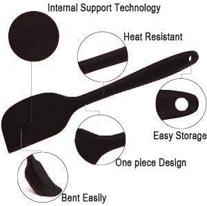 - صحية وآمنة: سطح الملعقة المسطحة المصنوع من السيليكون الصلب الخالي من مادة BPA بنسبة 100% لا يترك أي شقوق لجمع البكتيريا، وملعقة المطبخ الممتازة متينة بما يكفي لخلط المكونات الرطبة والجافة معًا.