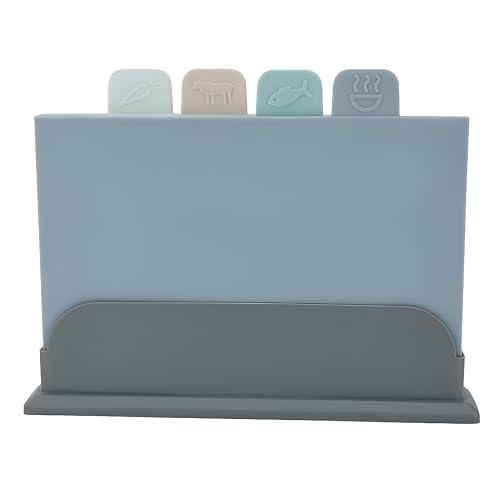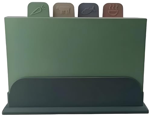 Generic - ملحقات تحضير الطعام - مجموعة مرمزة بالألوان مكونة من اربعة الواح تقطيع مع رموز طعام منقوشة وحامل تخزين، مصممة لمنع التلوث المتبادل، متوفرة بالوان متنوعة