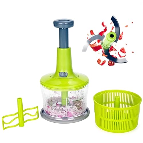 Generic - قطاعة طعام محمولة باليد - أداة يدوية صغيرة بسعة 2 لتر مع 3 شفرات لتقطيع الخضروات والأعشاب والفواكه بدون مجهود